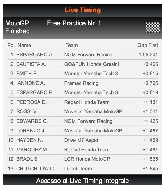 prove libere FP1 MOTOGP QATAR